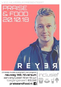Muzikant REYER en zijn band komen een concert verzorgen! REYER is fulltime muzikant en onder andere bekend van de EO-jongerendag en samenwerking met diverse andere christelijke artiesten. Door de jaren heen heeft hij vele soorten tracks en muziek geproduceerd. Inmiddels heeft hij diverse CD’s uitgebracht. Zijn laatste CD “Hoop in mij” is op 18 mei j.l. uitgekomen. Luister zijn muziek maar eens via youtube.com.