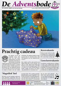 In de adventsperiode gaan we samen met Simon Schreefloos op zoek naar ‘het beste nieuws’. Simon Schreefloos is journalist bij de ‘adventsbode’. Het blad waarvan we wekelijks een exemplaar gaan ontvangen in de eredienst. Ter voorbereiding op het kerstfeest hopen we jong en oud erbij te betrekken; hiervoor ontvangen de gezinnen met kinderen vanaf 3 jaar een boekje dat hen wil helpen dagelijks stil te staan bij advent.In het gezinsboekje staan verhaaltjes en opdrachten en we vragen ze om daaruit een paar opdrachten – samen met hun kinderen – uit te voeren, ter voorbereiding op het kinderkerstfeest, dat gehouden zal worden op zondag 20 december om 17.00 uur.