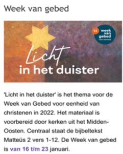 Een Bijbelstudie op dinsdagmiddag 25 januari van 14.30-15.30 uur, waarbij we geen tekst lezen of boekje gebruiken.