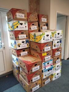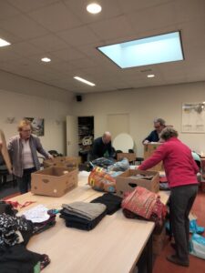Op maandag 24 oktober is alles gesorteerd en in bananendozen verpakt door dames van de Vrouwenvereniging.