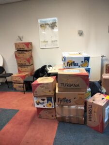 En op dinsdag 25 oktober hebben Piet Meijaard en Sies Pelsma met hulp van Jeanet Lubbers, alle dozen naar Bennekom gebracht.