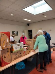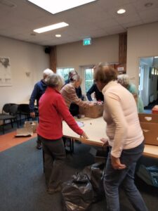 Op maandag 24 oktober is alles gesorteerd en in bananendozen verpakt door dames van de Vrouwenvereniging.