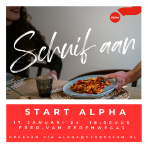 Op 6, 13 en 20 maart is er nog Alpha cursus.