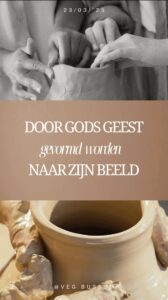 Zondag wil ik met jullie nadenken over het werk van de Heilige Geest in ons leven. Over hoe de Heilige Geest ons leven wil vormen naar het evenbeeld van God. Tot dan!