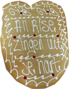Zondag 30 maart zong het koor “All Rise” uit Bunschoten/Spakenburg bij ons in de dienst en bij de koffie trakteerden zij op deze reuze-koek.