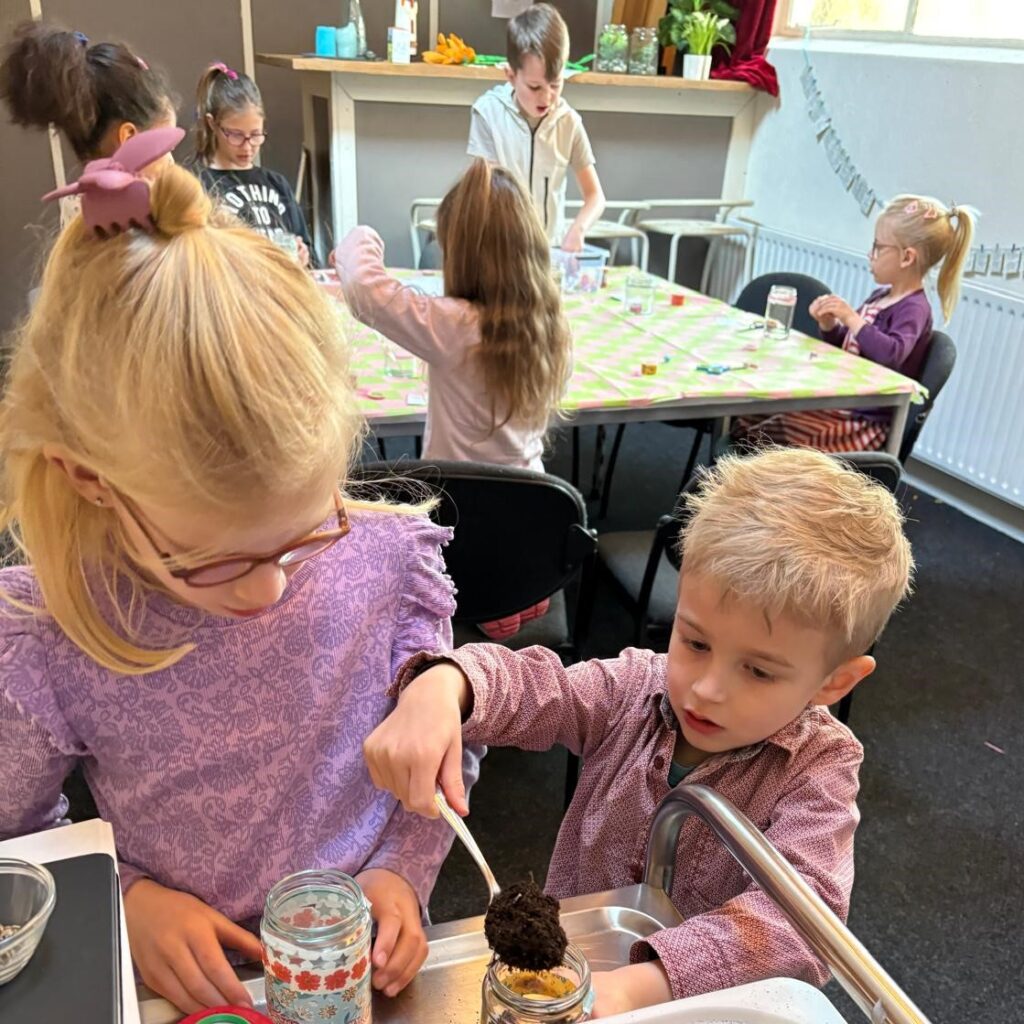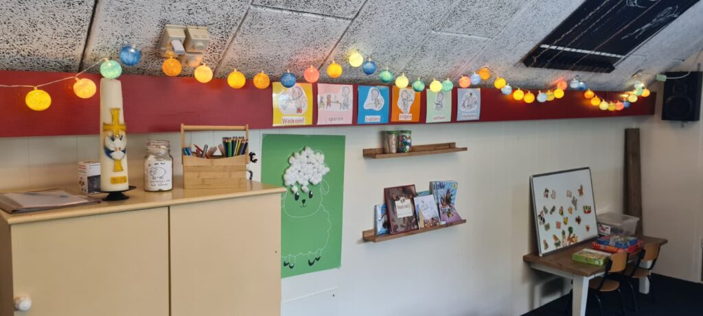 Tijdens de zondagochtenddienst beginnen we samen in de kerk. Na ongeveer 15 minuten, en we samen een kinderlied hebben gezongen, mogen de kinderen in de basisschoolleeftijd onder begeleiding naar een speciale ruimte. Daar lezen we samen een Bijbelverhaal en is er daarna tijd voor een activiteit die het verhaal tot leven brengt. Soms gaan we creatief aan de slag met knutselwerkjes die aansluiten bij het verhaal van die week, andere keren spelen we een spel of beelden we het verhaal uit. Zo maken we het geloof op een speelse en begrijpelijke manier toegankelijk voor de kinderen!