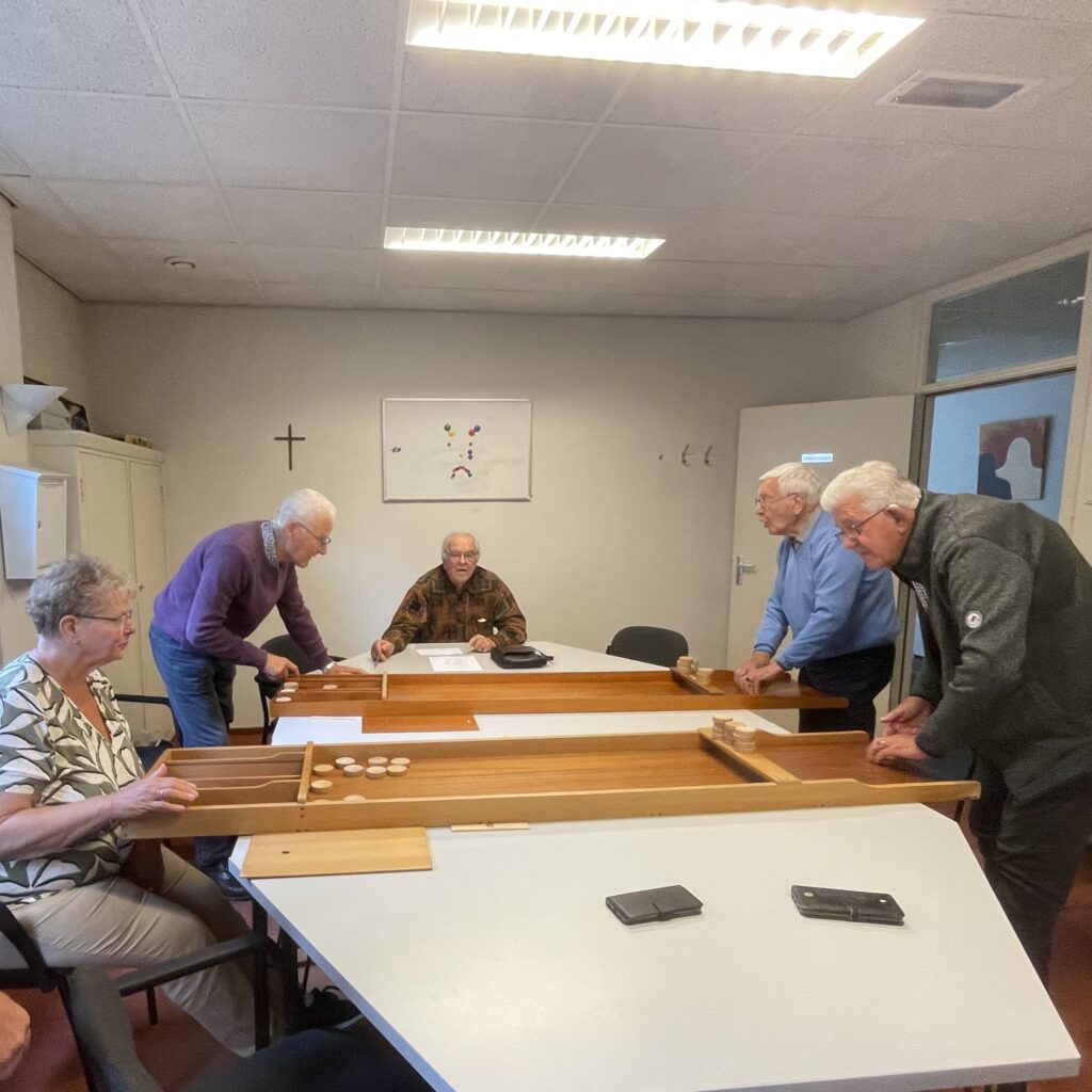 Het is een fijne gelegenheid om gezellig bij elkaar te komen, een kopje koffie of thee te drinken, te praten over gewone dingen en naar elkaar te luisteren. Of wellicht doet u mee met een spelletje, zoals Rummikub, Mens Erger Je Niet of Triomino. Misschien traint u uw geheugen met “Kom er maar eens achter” of waagt u zich aan de sjoelbak, waar het altijd spannend is wie de hoogste score haalt!